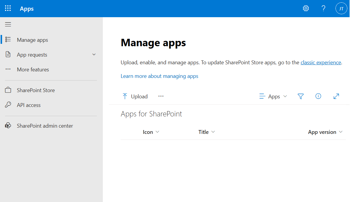 First we need to install the web part found in the zip file as aowgeneralapp.sppkg. This needs to be installed on your SharePoint tenant by a SharePoint administrator. This is usually someone in IT in your organization. They can generally do this at https://[your_tenant].sharepoint.com/sites/appcatalog/_layouts/15/tenantAppCatalog.aspx/manageApps. Below shows where the SharePoint admin installs the web part by clicking on "Upload" or dragging the file to the screen. The admin is asked to confirm whether they want to install the web part and whether they wish to install it for the entire tenant (making it available as a web part for everyone editing SharePoint pages) or if it should be installed on one SharePoint at a time (requiring each SharePoint owner to install the web part for their own SharePoint site).